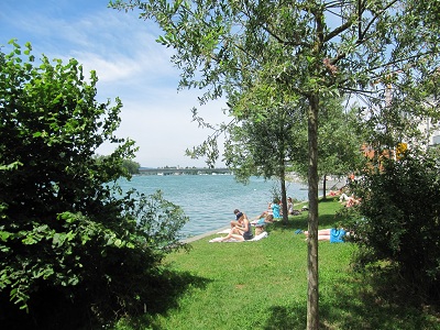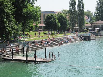 Unmittelbar vor der Wohnanlage ist in den letzten Jahren durch die treppenförmige Gestaltung des Rheinufers, eine sehr attraktive und gern genutzte weitere Bademeile in Konstanz entstanden. In den Frühlings- und Sommermonaten, bis hinein in den milden Seeherbst machen Bewohner und Studenten der nahegelegenen Hochschule gerne davon Gebrauch, sonnen sich auf den steinernen Stufen, beobachten die vorbeiziehenden Schiffe und Yachten oder tauchen in die Fluten des Seerheins ein, um hier ihre Runden zu ziehen.